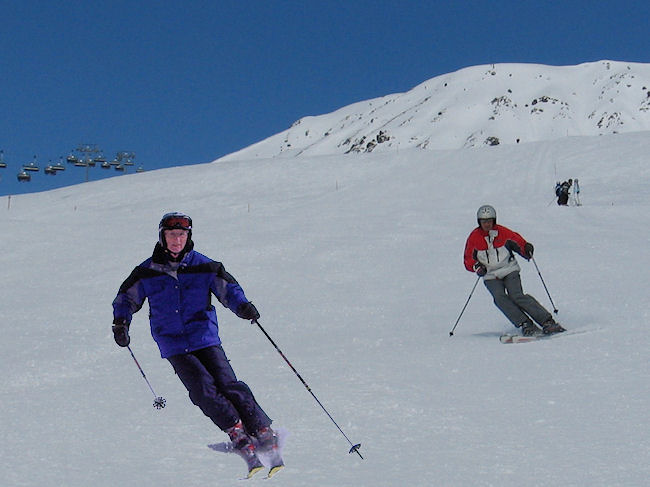 Nach einem guten Essen ging's' wieder auf die Piste, hinunter zur Pezidbahn, die uns auf 2770m zur höchst gelegenen Abfahrt bringt. |