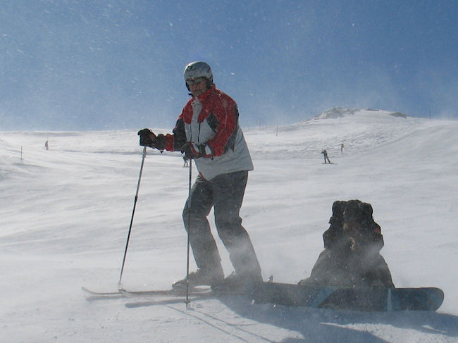 Gegen Mittag blies ein starker Föhn auf dem Schönjoch und es war nur eine Frage der Zeit bis die Bahnen abgestellt werden mussten. |