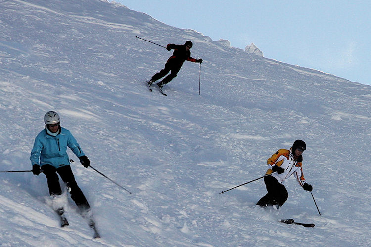 Kommt Jungs, wir wollen auf die Piste bevor der Neuschnee verfahren ist |