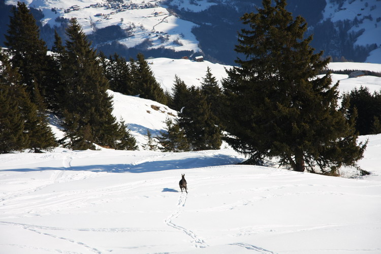 Hier zieht es eine junge Gemse vor in geschützteres Gelände zu fliehen |