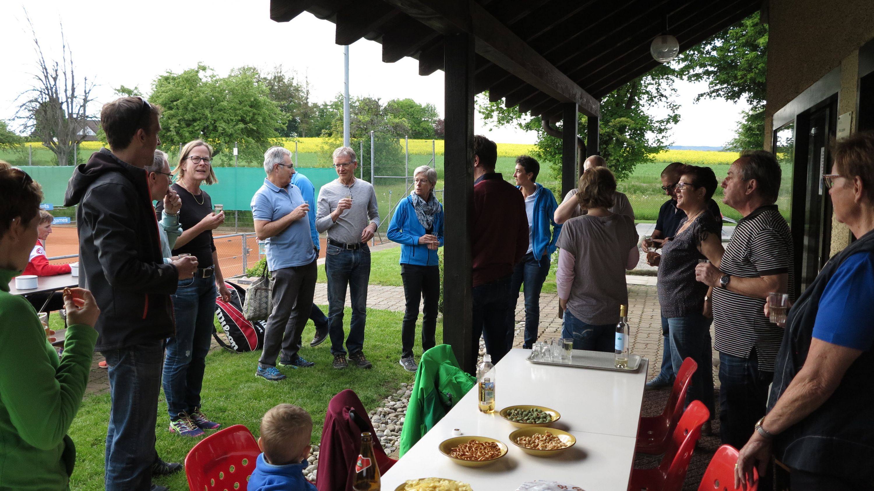 Während sich eine Gruppe noch am Spielen befand um die Revanche einzufordern, hatte Beat den Grill in Gang gesetzt, auf dem gleich darauf saftige Plätzchen und Würste einen feinen Geruch verbreiteten und unseren Appetit anregten. Dazu gab es allerlei Salate, welche wie immer unsere Frauen zubereitet hatten und von den Anwesenden mit Genuss verspeisst wurden. Auch das reichhaltige Dessertbuffet kam aus der Küche der Skiclub-Frauen und rundete das feine Nachtessen ab. Nach dem auch die 4 Mitglieder aus dem Pétanque-Club mit uns gespeisst hatten, verabschiedeten sie sich und bekamen für ihre Unterstützung einen kräftigen Applaus.