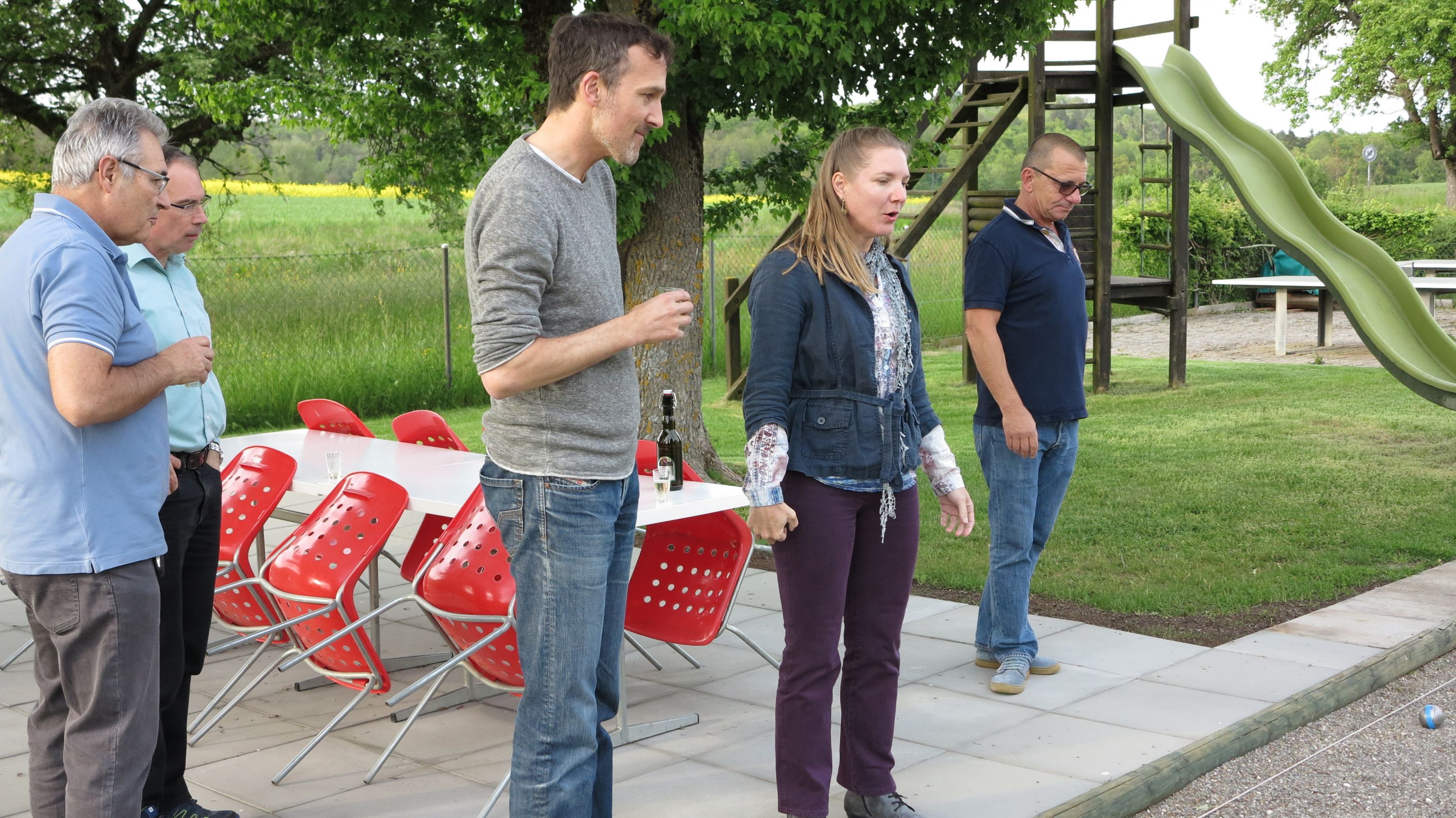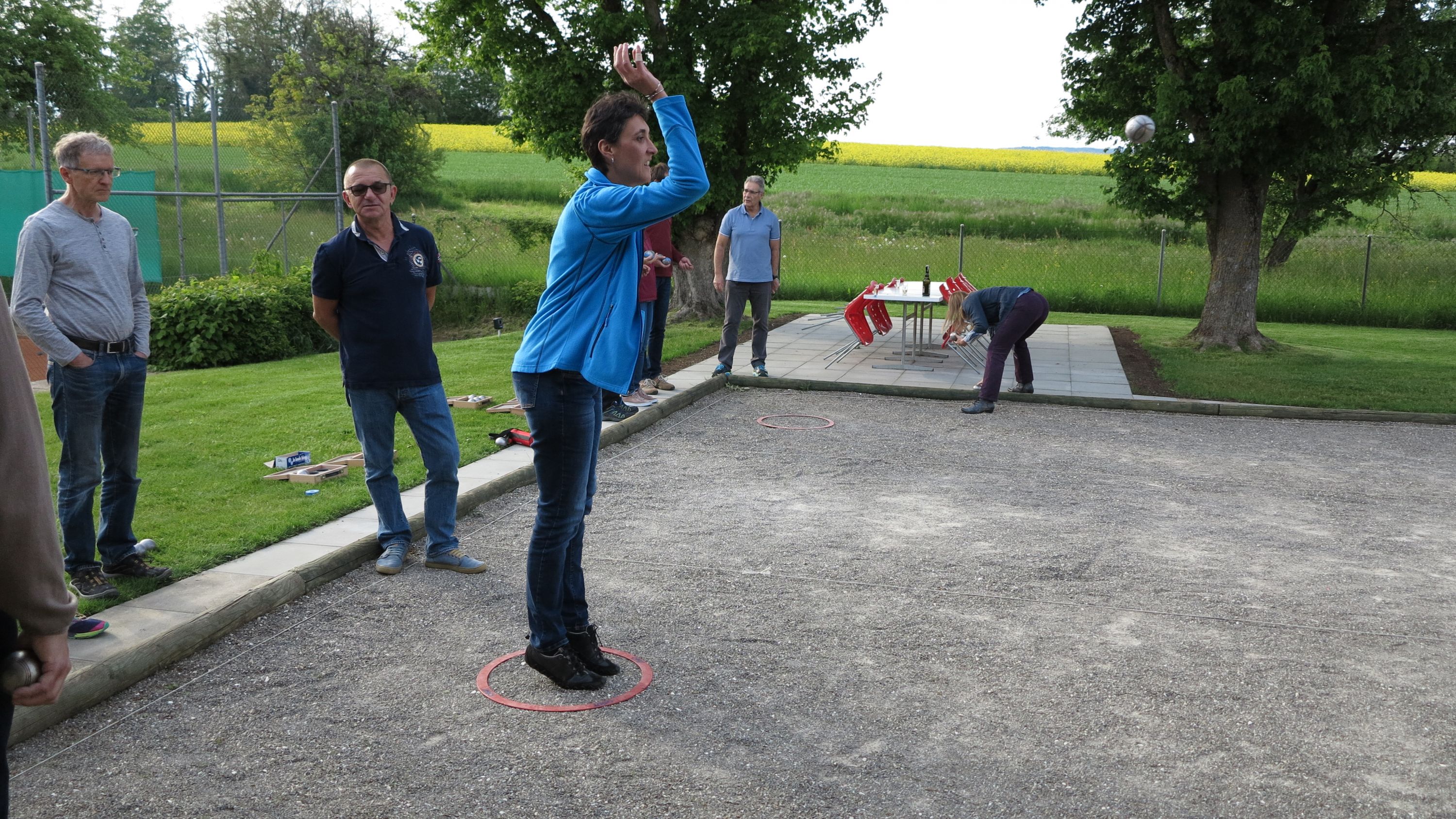 Für den Wintersaison Abschlusshock 2019 trafen sich die 18 angemeldeten Mitglieder im SVC-Clubhaus in Buchthalen. Carola begrüsste, stellvertretend für unseren Präsi, die Anwesenden während des Apéro, den wir, dank dem herrlichen Wetter und der angenehmen Temperatur im Freien abhalten konnten. Anschliessend hatten wir die Gelegenheit Pétanque zu spielen. 4 Mitglieder aus dieser Sektion erklärten uns die etwas umfangreichen, Regeln. Nach dem wir diese einigermassen intus hatten wurden die Spielgruppen eingteilt. Jeder Spieler bekam 3 Metallkugeln und dann ging es los. Bald merkten wir, dass es gar nicht so einfach ist die Metall-Kugel so nahe wie möglich an die kleine Zielkugel (Cochonnet) zu bringen. Doch nach jeder Runde wurden wir besser und damit kam auch der Spass an dieser Sportart.