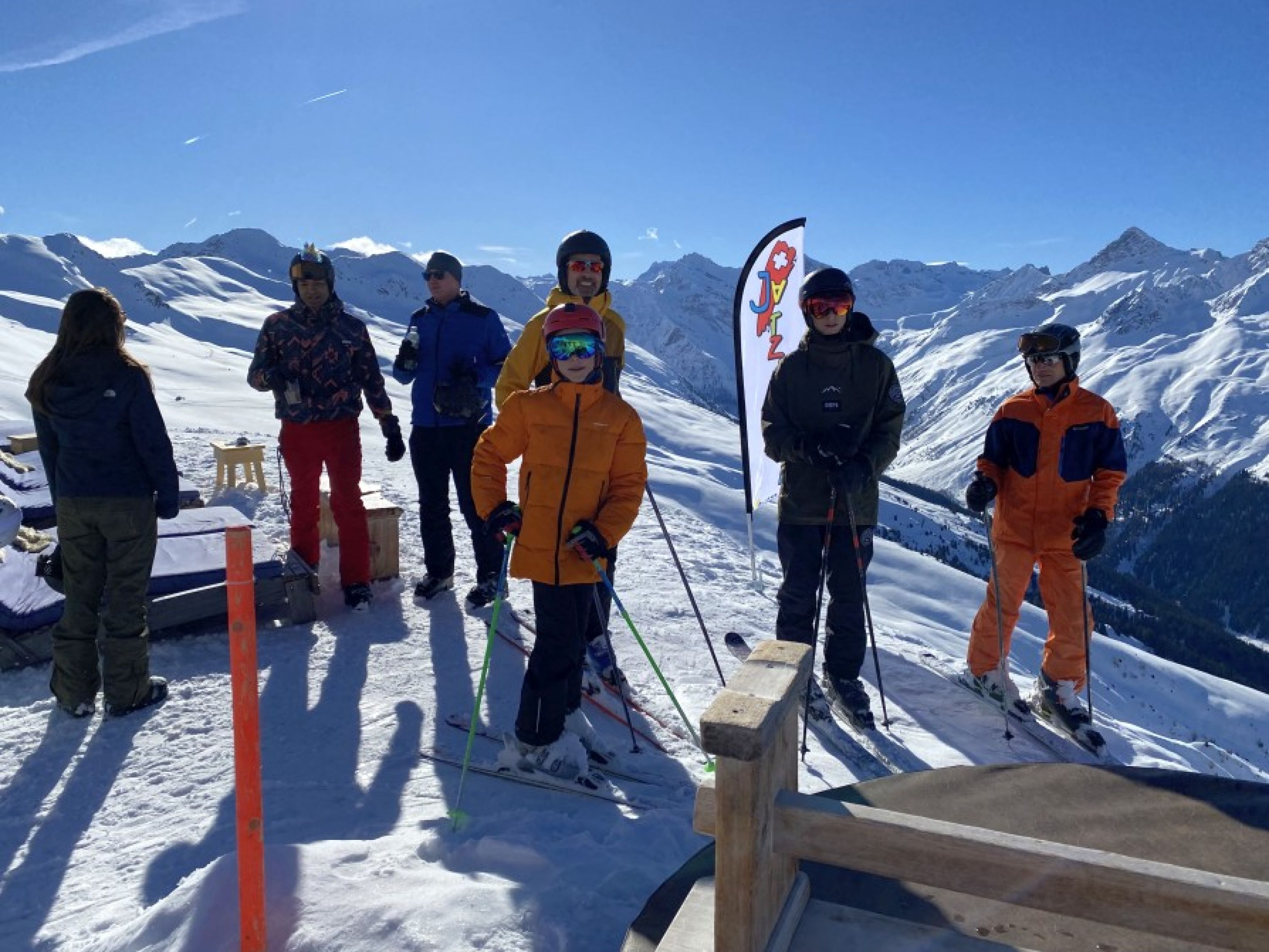 Die Reise hat am Morgen des 3. Februar 2024 gestartet. Um ca. 8:30 Uhr haben wir uns in Davos an der Talstation der Jakobshornbahn getroffen und sind, nachdem auch Manuel endlich sein Ticket hatte, mit der Gondel hochgefahren. Oben angekommen sind wir als erstes auf den Sessellift und haben uns oben ein wenig aufgewärmt. Endlich sind wir die erste Piste runtergefahren.